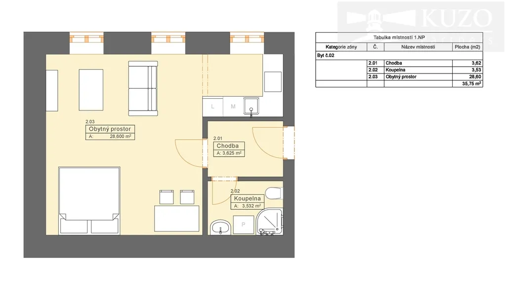• Byt o výměře 36 m² – cena 3.672.000 Kč