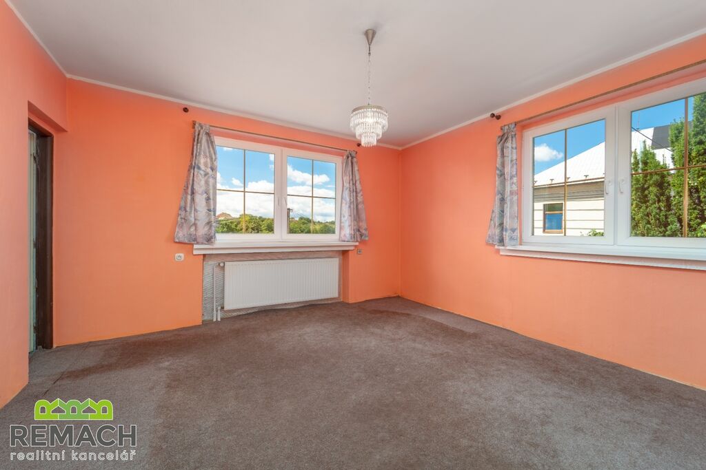 V horním podlaží jsou nyní dva pokoje, ale další půdní prostor lze využít k přestavbě na velmi rozsáhlý pokoj.