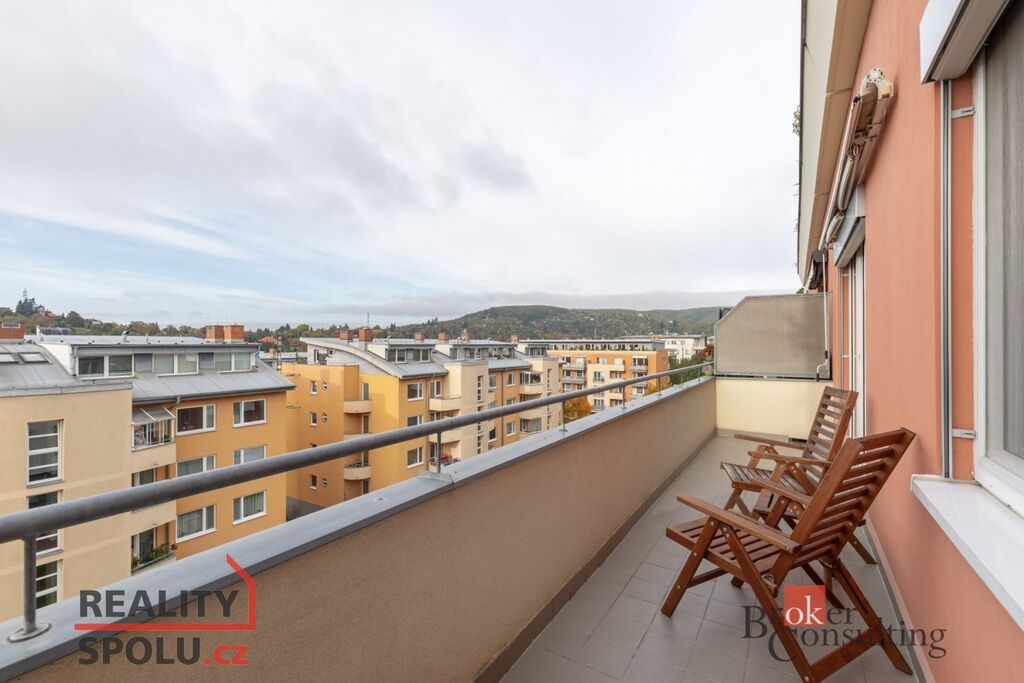 Dominantou bytu je velká terasa s krásným výhledem a markýzou, ideální pro posezení v letních dnech.