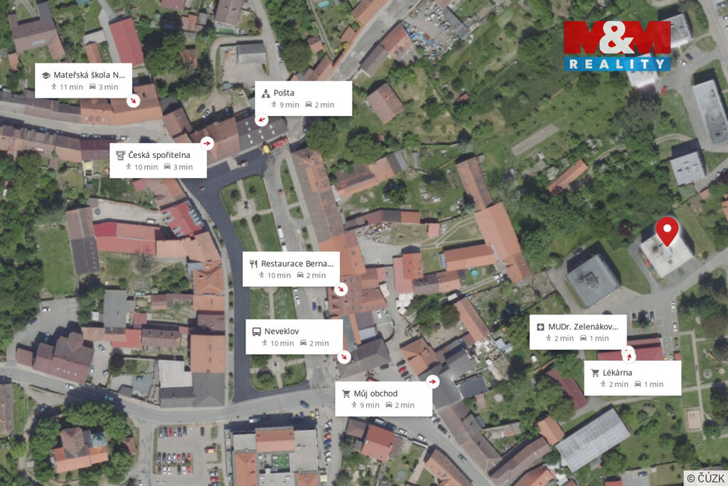 Město Neveklov nabízí základní občanskou vybavenost. Veškerá občanská vybavenost se nachází v Benešově, který je vzdálený cca 15 km. Tato lokalita nabízí výbornou dostupnost do Prahy.