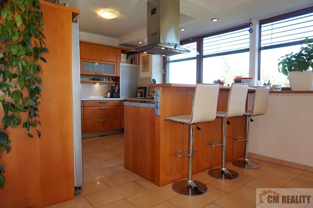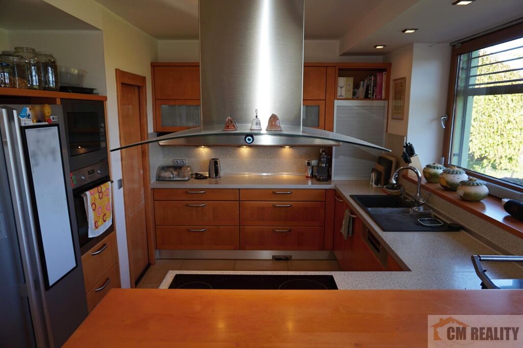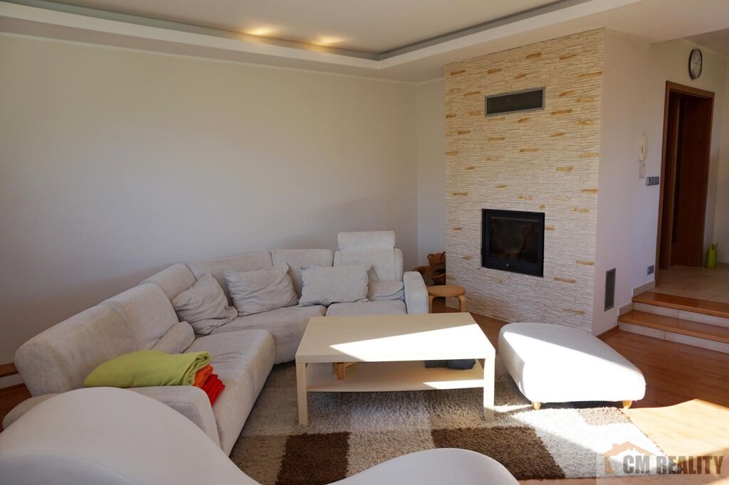 Dům byl kolaudován v r. 2008 a jeho dispozice byla velmi dobře promyšlena. Dům je postaven z keramických tvárnic porotherm, vytápění domu je podlahové pomocí tepelného čerpadla zn. IVT, typ země-voda (zemní kolektor), které slouží i pro ohřev TUV. Dům je vybaven centrálním vysavačem, zabezpečen pomocí EZS, okna jsou plastová, většina opatřena venkovními žaluziemi, střešní okna jsou zn. VELUX. Interiérové dveře jsou obložkové dýhované. V obývacím pokoji posezení v zimním období zpříjemní krb. Jídelní část je dostatečně veliká i pro větší rodinu a z jídelní části je vstup na zastřešenou terasu. Na terase je k dispozici zahradní krb a udírna. Na dům navazuje velká zahrada, která poskytne dostatek prostoru ať již pro Vaše děti nebo k využití pro relaxaci, instalaci venkovní sauny, či zahradničení.