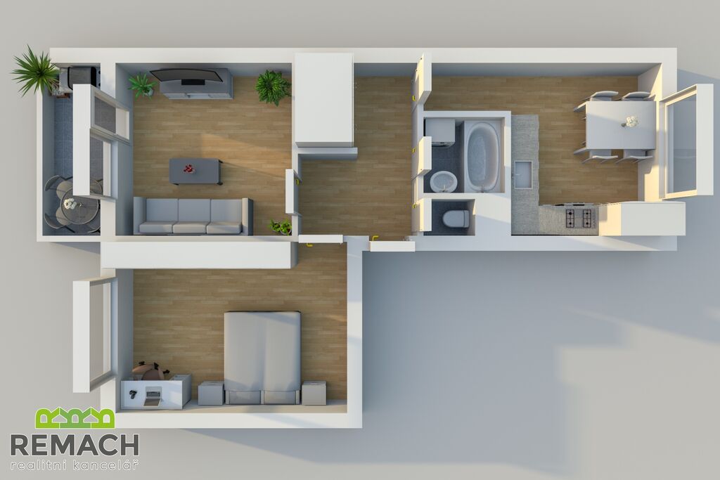 Zrekonstruovaný byt o dispozici 2+1 s rozlohou 56,8 m2, s balkonem o rozloze 5 m2 a velmi prostorným sklepem o rozloze 16 m2, umístění v lokalitě se spoustou zeleně, třemi dětskými hřišti a venkovním sportovištěm, umístěným ihned u domu.