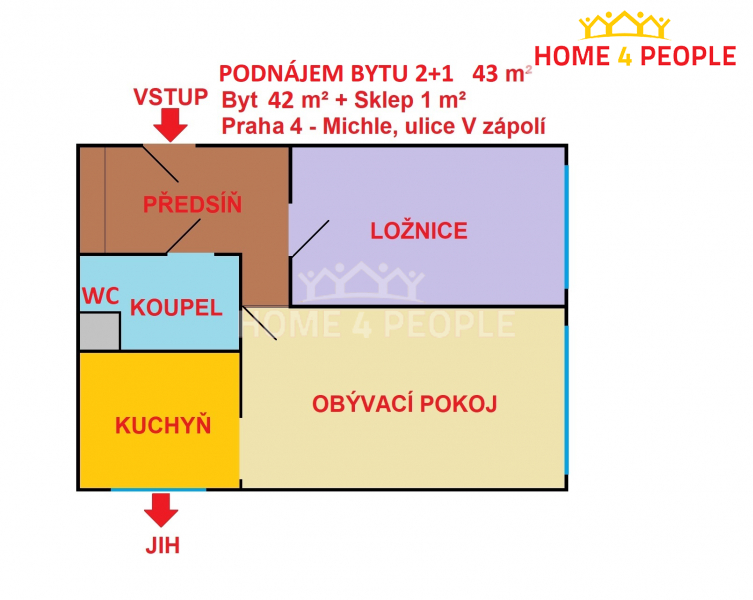 Zprostředkujeme Vám výhradní pronájem bytu o dispozici 2+1 o celkové podlahové výměře 43 m² (byt 42 m² + sklep 1 m²), nacházejícího se v přízemí (1. NP) pětipodlažního domu v ulici V zápolí, v Praze 4 - Michli. Byt je po celkové rekonstrukci - v perfektním stavu, na podlaze jsou v pokojích položeny parkety, v koupelně dlažba, v kuchyni a předsíni PVC. Topení a ohřev vody je ústřední, plastová okna směřují k jihu z kuchyně a k východu z pokojů do parku okolo domu. Vybavení bytu: kuchyni je umístěna nová kuchyňská linka s novými spotřebiči: lednice s mrazákem, myčka, indukční plotýnka, trouba, mikrovlnná trouba a digestoř, v předsíni vestavná šatní skříň, v pokoji stůl se židlí. PENB je uvedeno v C. Budova je po rekonstrukci - má novou fasádu a střechu, nové sklepy atd. Parkování je bezproblémové v ulici před domem, zřízena modrá zóna pro rezidenty. V dané lokalitě se nachází možnosti veškerého společenského uplatnění: zejména - škola, školka, restaurace, lékař, lékárna, pošta, nákupní střediska. Je zde pohodové bydlení. Dobrá dopravní dostupnost – 1 minuta na MHD - BUS, 5 min metro C Kačerov a Budějovická. Byt je připraven k nastěhování od 12/2025. Velmi doporučujeme osobní prohlídku. Ev. číslo: 29811.