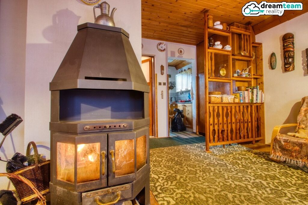 Chata má příjemnou dispozici, která dává smysl. V přízemí najdete prostorný obývák s velkým stolem, s krbovými kamny, které vyhřejí prostor dřív, než si připijete s hosty na přivítanou. Dále tu je kuchyňský kout, koupelna se sprchovým koutem a WC. Z obýváku vyjdete na balkón kde můžete obědvat na čerstvém vzduchu. V podkroví jsou dvě ložnice s celkem 8 postelmi. Ve zděném suterénu máte tři místnosti a přímý výstup na zastřešenou terasu. Schodiště je šikovně umístěno uvnitř a odděleno od obytného prostoru. Zavolejte mi a na prohlídce vám ukážu, jak prakticky je to všechno vyřešené.