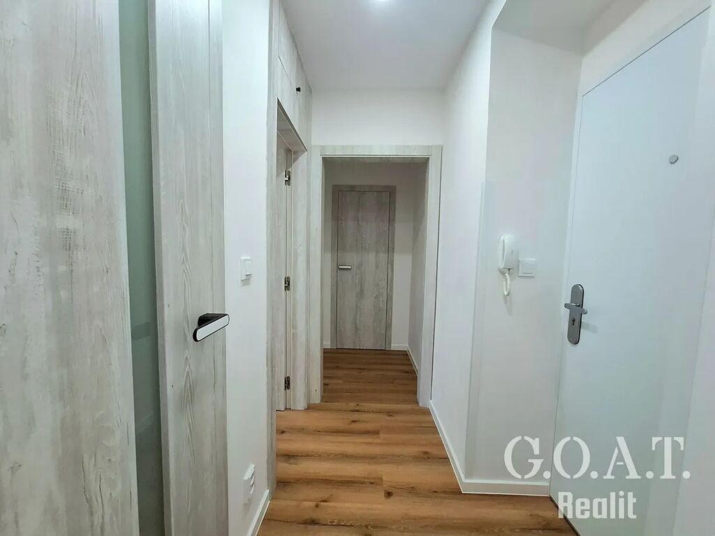 Byt tvoří prostorný obývací pokoj s kuchyňským koutem, ložnice a další samostatný pokoj, který lze využít jako dětský pokoj nebo pracovnu. Vedle ložnice je umístěna praktická šatna.