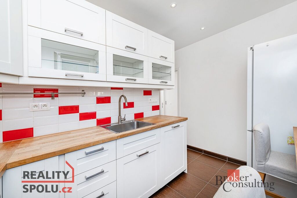 Byt se pronajímá nezařízený, avšak v kuchyni je lednice, myčka a plynový sporák. V předsíni zůstává botník a vestavěné skříně, výhodou je komunikační systém s kamerou u vstupních dveří do domu– včetně možnosti ovládání přes internet pomocí aplikace.