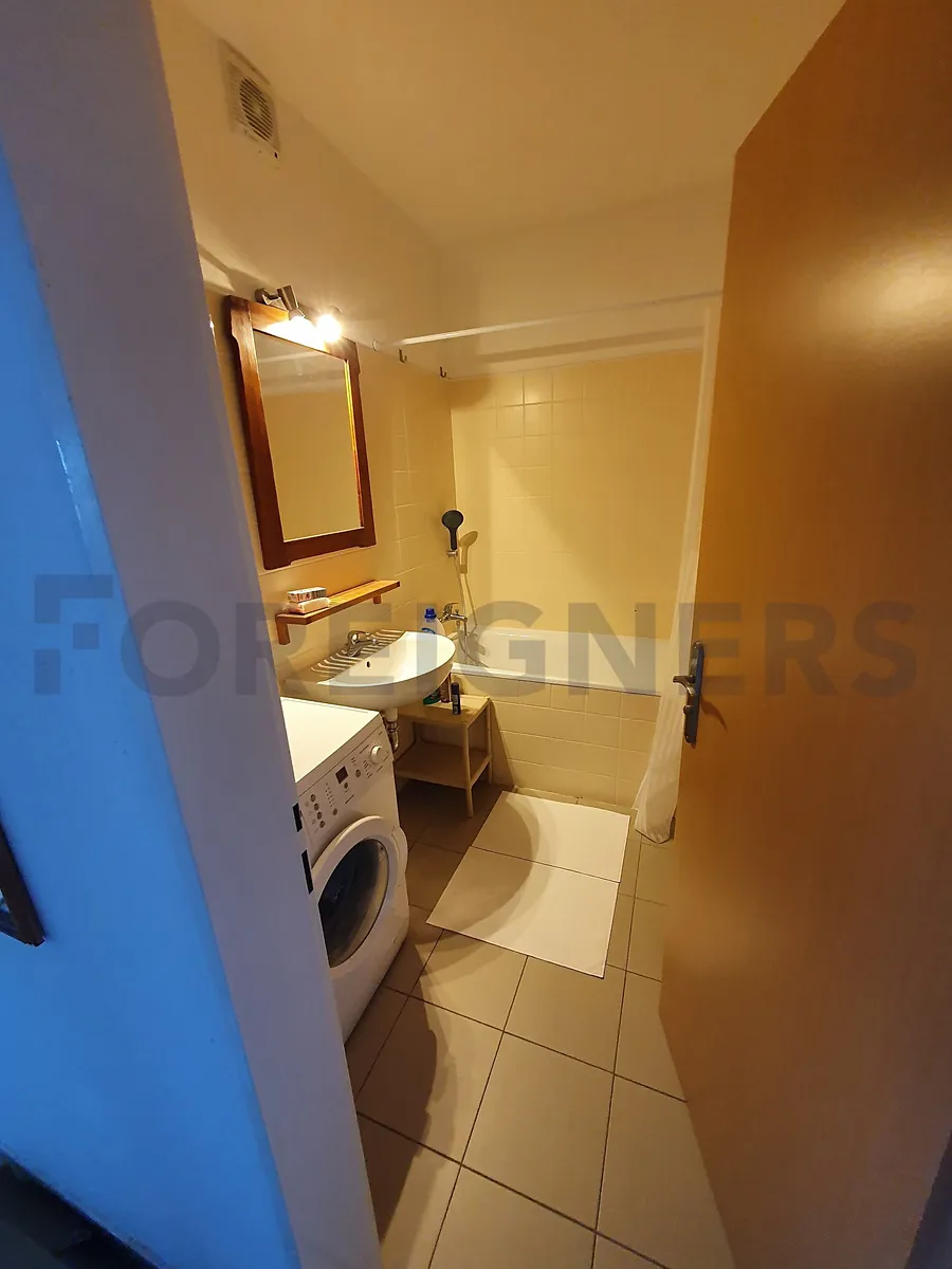 • koupelna s vanou, umyvadlem a pračkou, toaleta je oddělená