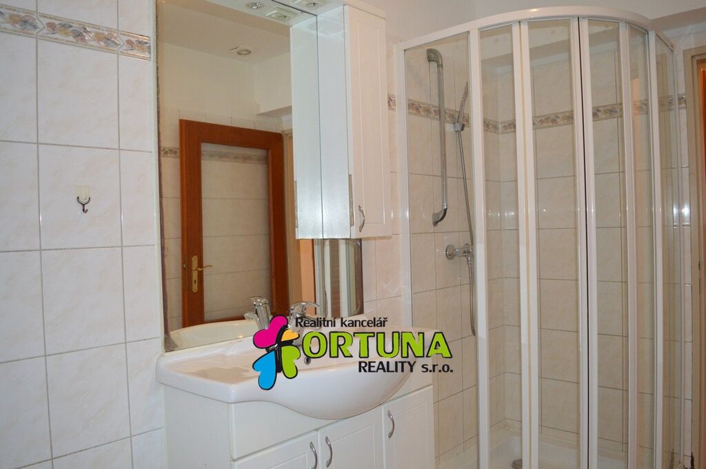 Dále je po několika schodech chodba, ze které je vstup do druhé ložnice, koupelny s vanou a sprchovým koutem, samostatného WC a do technické místnosti s plynovým kotlem.