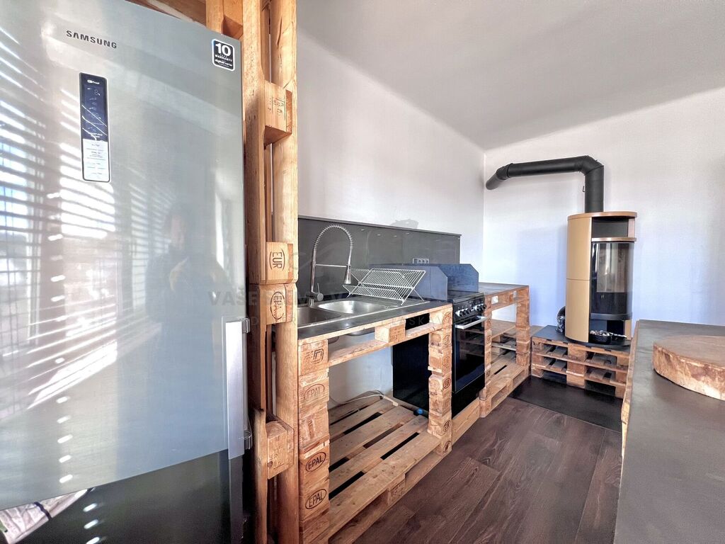 Originální útulný byt 2+kk (60m2) s krbem a pergolou