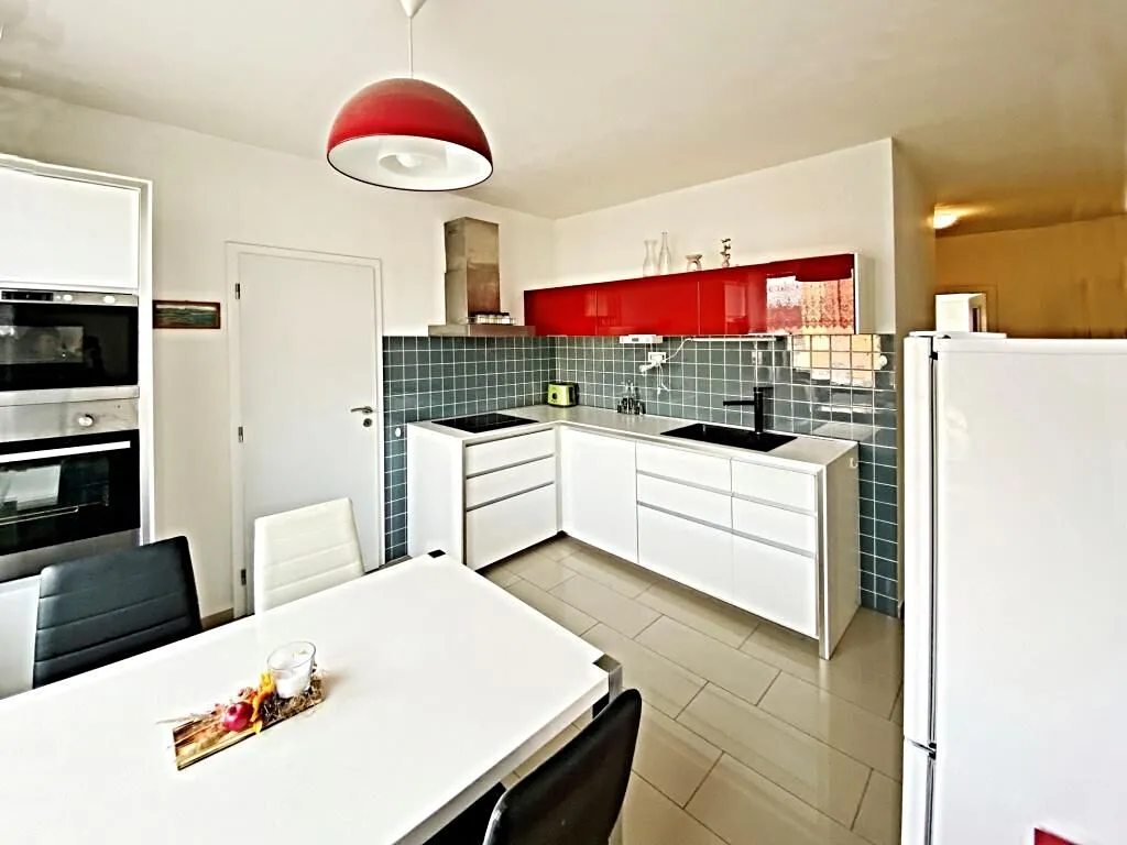 Kuchyně disponuje elektrickou troubou, varnou deskou, digestoří a lednicí. V kuchyni je i jídelní stůl s židlemi.