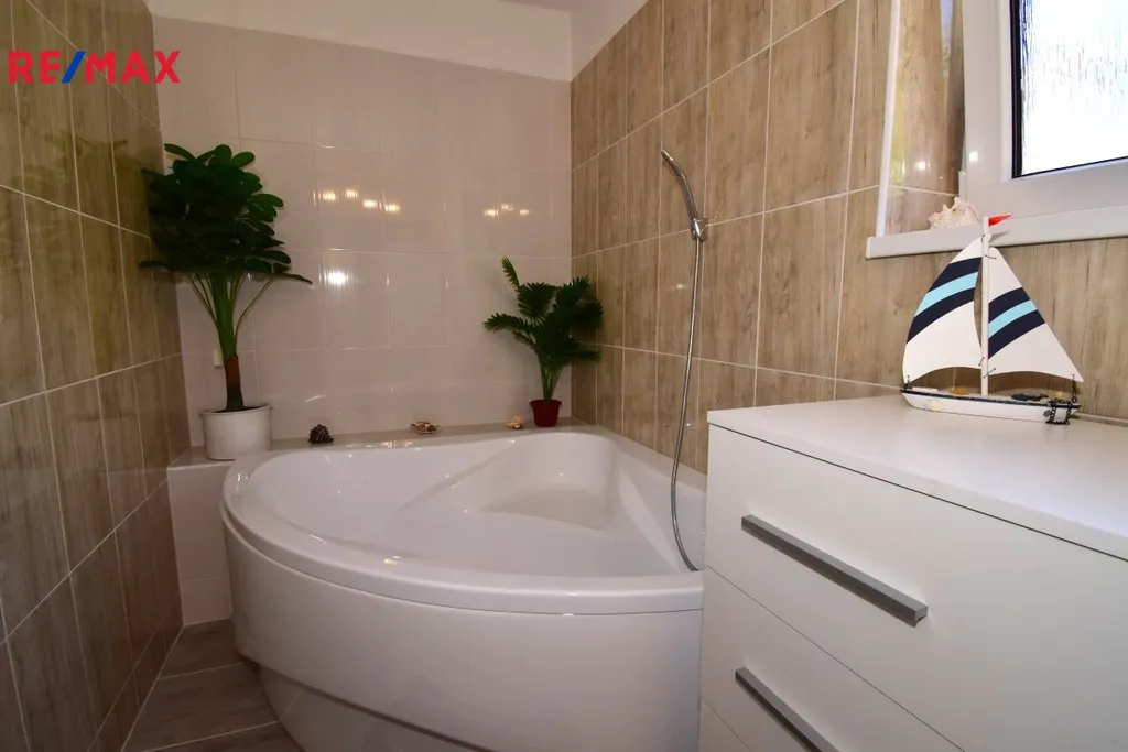 1) 2+kk o výměře , která prošla zásadní rekonstrukcí a nabízí prostornou předsíň se vstupem do potravinové komory a také do vstupní haly, kde jsou postupně dveře do obývacího pokoje spojeného s kuchyní a jídelnou, kuchyně je plně vybavená elektrospotřebiči, nová kuchyňská linka, podlahy, rozvody, okna, velmi prostorná koupelna to tvaru "L", kde je prostorný sprchový kout i velká rohová vana a dále ložnice.
