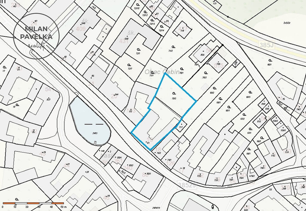 Platný územní plán umožňuje výstavbu dvou nadzemních podlaží + obytné podkroví. Uliční šíře je 22 m a délka pozemku je cca 55 m.