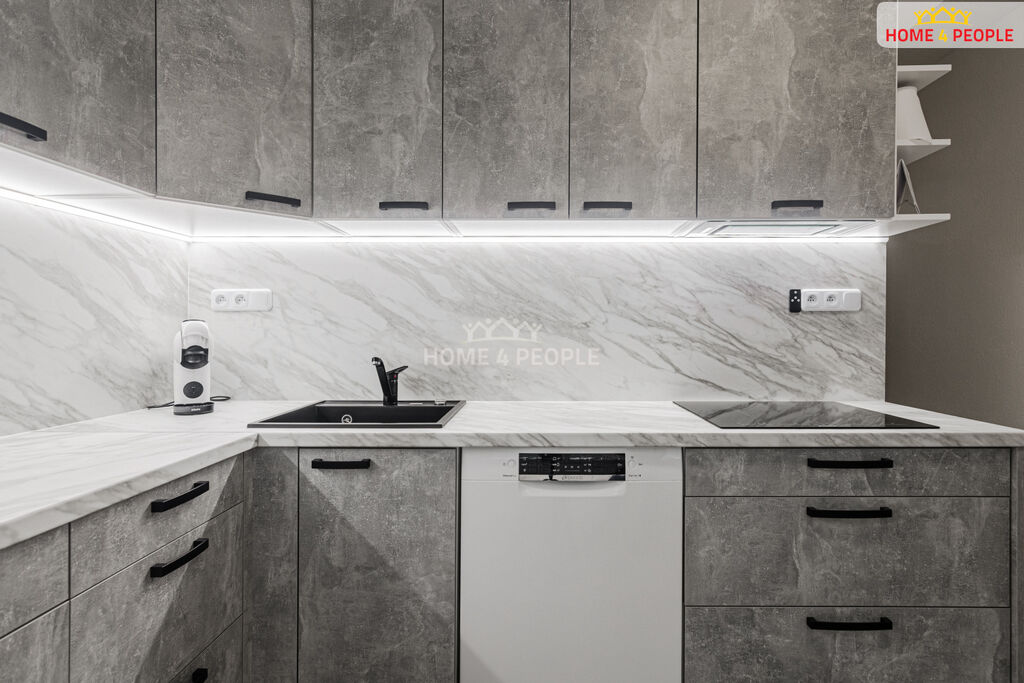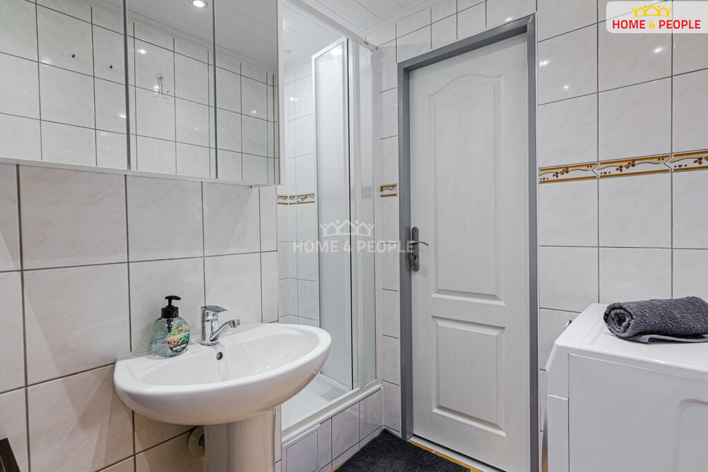 Při vstupu do bytu vejdete do prostorné předsíň (8 m²), která spojuje jednotlivé místnosti. Obývací pokoj (20,5 m²) nabízí dostatek místa i pro jídelní stůl. Kuchyně (12 m²) je vybavená moderní kuchyňskou linkou s vestavěnými spotřebiči. Ložnice (16 m²) je orientovaná do klidné části domu. Koupelna se zděným jádrem má jak vanu, tak sprchový kout, toaleta je samostatně.