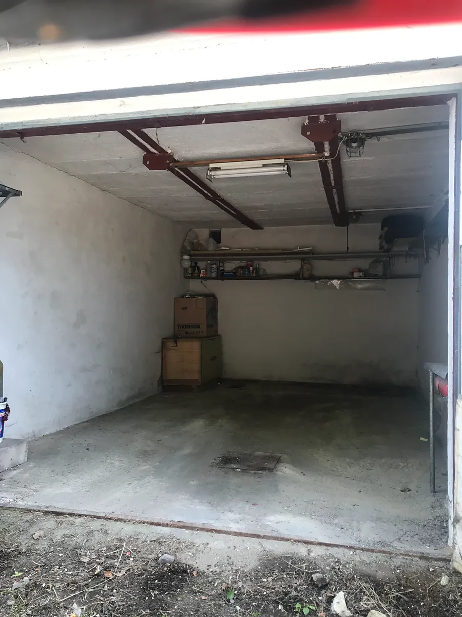 Garáž o užitné ploše 18 m² poskytuje dostatek místa pro běžné osobní automobily (viz foto). K dispozici elektřina 220 V.