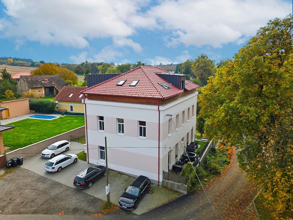 Krásně řešený Penthouse v novostavbě, o dispozici 4+kk, 158 m² se skladovou kójí, společnou zahradou, dvěma parkovacími místy, výbornou dostupností do Prahy a přitom blízko přírody, v obci Čenětice - Křížkový Újezdec.