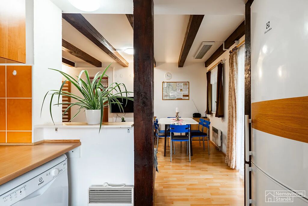 Nabízíme na prodej zděnou chatu v oblíbené rekreační oblasti Vojníkov u Písku. Dvoupodlažní chata s číslem evidenčním o zastavěné ploše 89 m2 byla kolaudována v roce 2008. Pečlivě udržovaná chata o dispozici 4+kk + dva balkony, poskytuje dostatek prostoru pro rodinu i přátele. Vhodná pro rekreaci i celoroční bydlení. Koupelna se sprchovým koutem, dvě toalety. Vytápění krbovými kamny + přímotopy. Voda z vlastního vrtu, kanalizace svedena do jímky. K dispozici je také finská sauna, vyhřívaný bazén 3x5 m, zastřešená terasa s grilem a posezením, přístřešek na auto, dřevník. Na oplocené zahradě mohou parkovat až čtyři vozy. Celková plocha pozemku je 702 m2. Chata stojí v krásné přírodní lokalitě na kraji lesa, jen pár minut pěšky od řeky Otavy a rekreačního zařízení Cajska - ideální pro koupání, rybaření a výlety do okolí. Chata je vhodná pro náročnějšího klienta, nebo může sloužit i jako investice k rekreačnímu pronajímání. Ubytovací kapacita až 10 lůžek. Vzdálenost od města Písek, kde je veškerá občanská vybavenost je cca 8 km. Doporučujeme prohlídku. Výhodné financování Vám rádi zprostředkujeme.