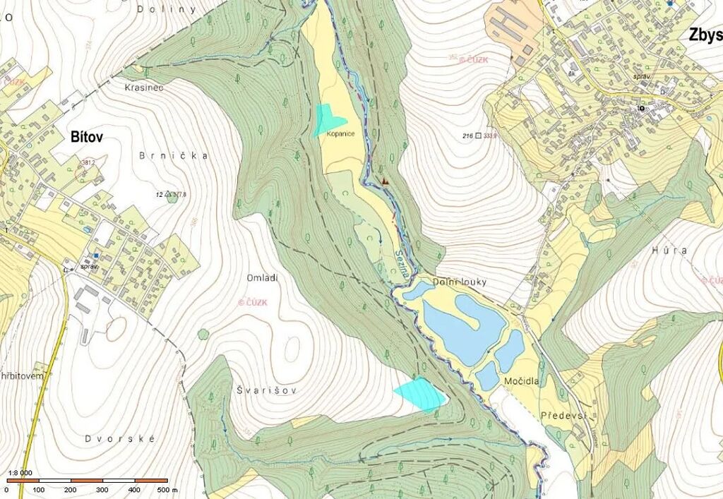 Parcela č. 472/1, s výměrou 9414 m2 (1/2 - 4.707 m2) je zapsána v katastru nemovitostí jako orná půda. K pozemku vede lesní cesta. V blízkosti jsou Rybníky Zbyslavice.