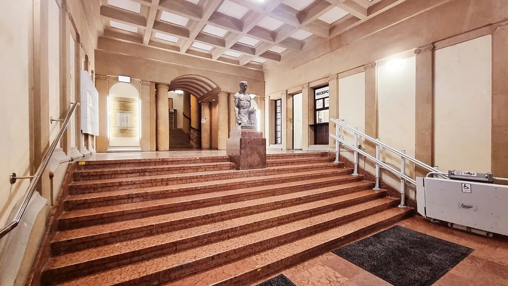 Kanceláře (14 m² a 32 m²) se nacházejí v 1. patře (3NP) kompletně zrenovované budovy se dvěma výtahy a denní recepcí.