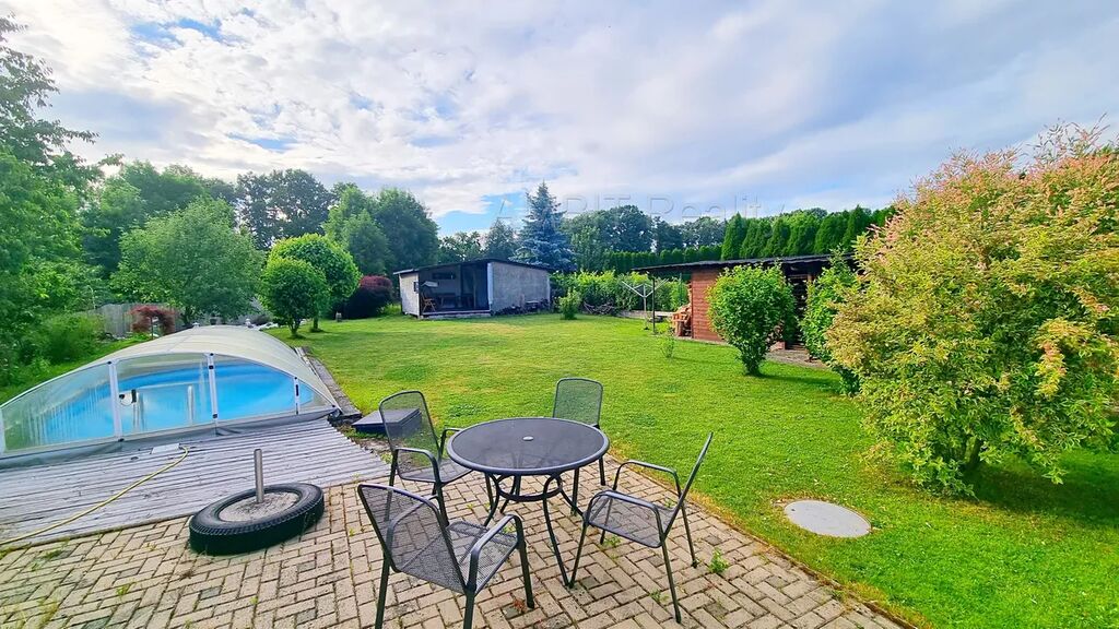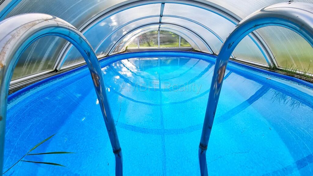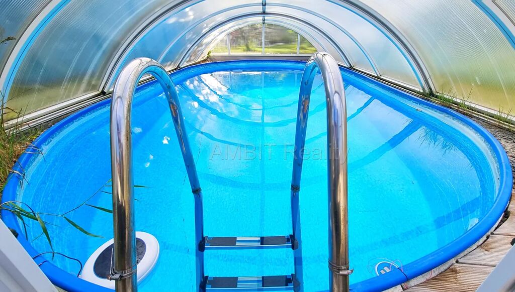 V zahradě je krytý podsvětlený bazén o rozměru d: 6 x š: 3,2 x h: 1,5m, velký altán 40 m2 s dílnou, malá japonská zahrada, velká úložná kůlna s nářadím, dále jsou v zahradě 3 parkovací stání, z toho jedno zastřešené. Na domě je venkovní přípojka elektřiny 220 a 380 V.