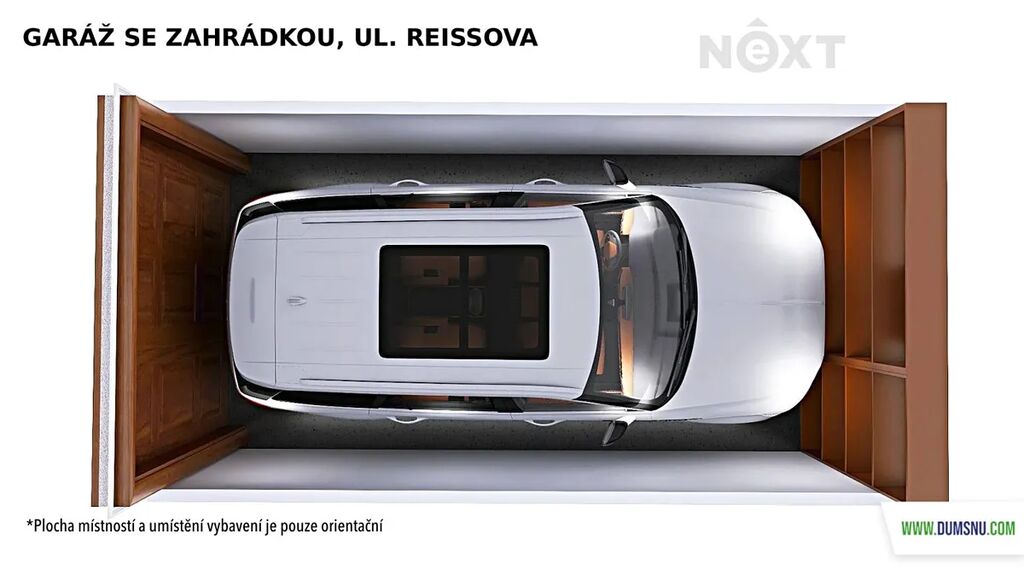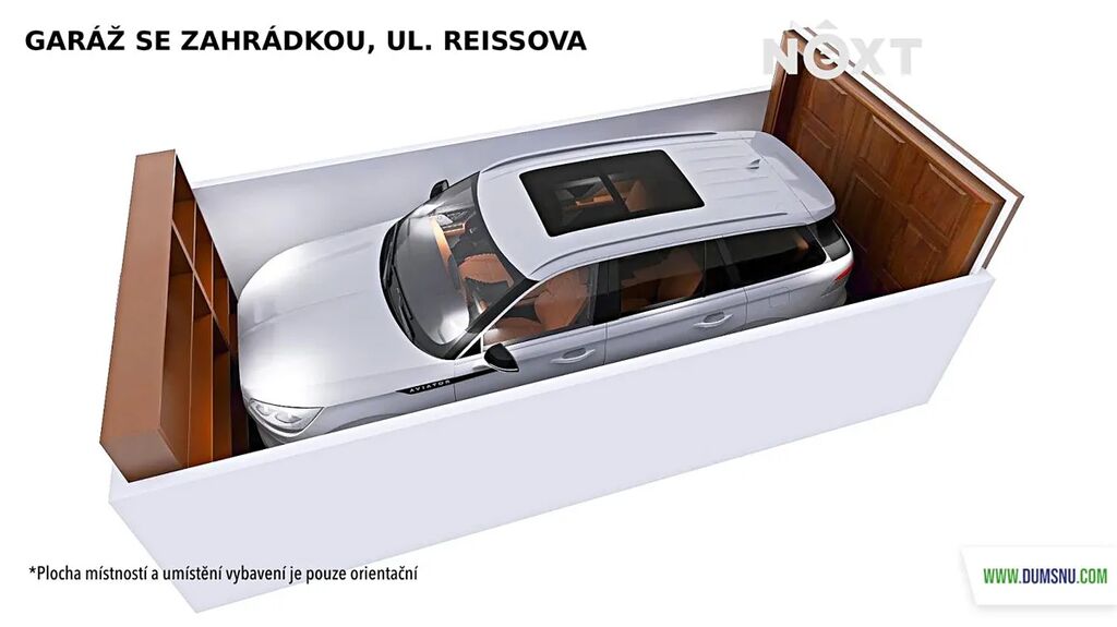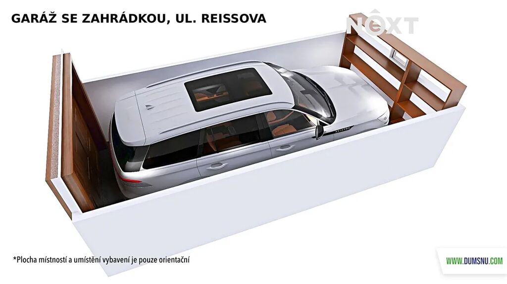 Na garáž navazuje pozemek o rozloze 212 m², který je rovinatý, mírně lichoběžníkového tvaru a dosahuje délky téměř 40 metrů. Za garáží se navíc nachází menší skladovací prostor, který rozšiřuje možnosti využití. Celý pozemek nabízí dostatek místa i soukromí pro zahradničení, odpočinek nebo volnočasové aktivity.