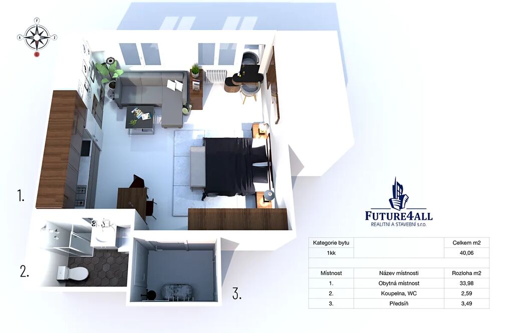 Exkluzivně nabízíme k prodeji byt 1+kk s možností úpravy na 2+kk, o výměře 40 m², ve 4. patře cihlového domu. Byt prošel kompletní rekonstrukcí včetně rozvodů; má nové vinylové podlahy, kuchyň i koupelnu – je tedy připraven k okamžitému bydlení bez dalších investic. Ideální pro jednotlivce či pár, kteří hledají moderní bydlení v dosahu centra. Krásný výhled do přírody.