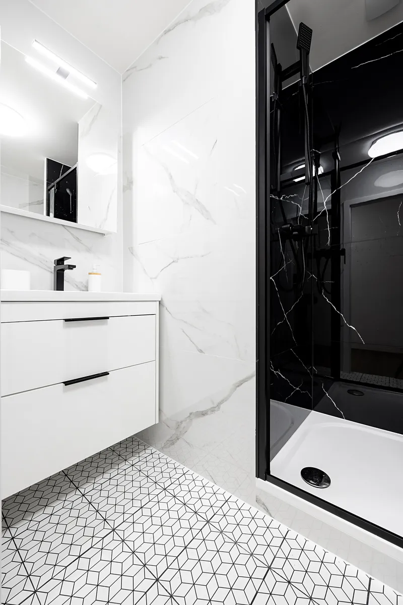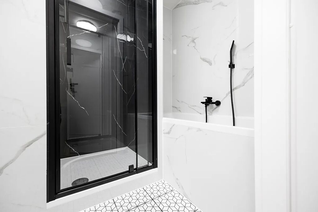 - nová sanita (vana, sprchový kout, umyvadlo, skříňka, toaleta)