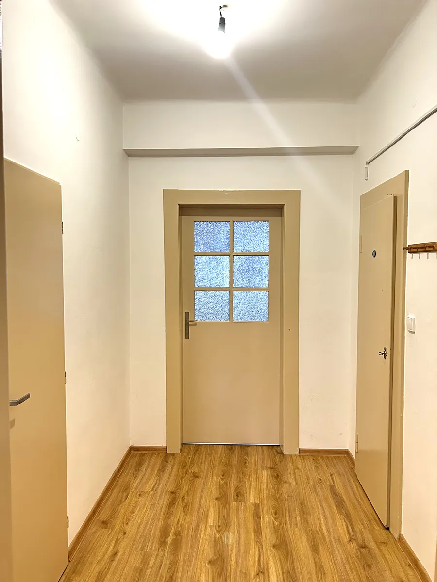 Byt leží v rozšířeném centru Plzně, má prostornou chodbu, samostatné WC, koupelnu se sprchovým koutem. Kuchyň vybavena kuchyňskou linkou, el. trouba, sklokeramická deska. Samostatný pokoj. Vytápění bytu obstará společná plynová kotelna a ohřev vody el. bojler.