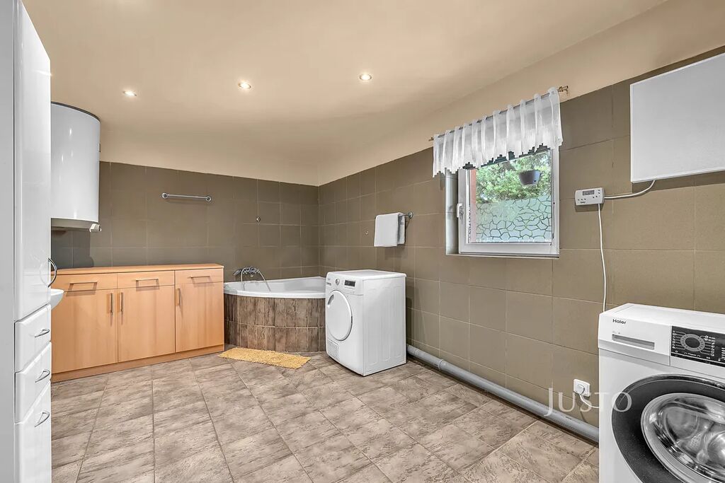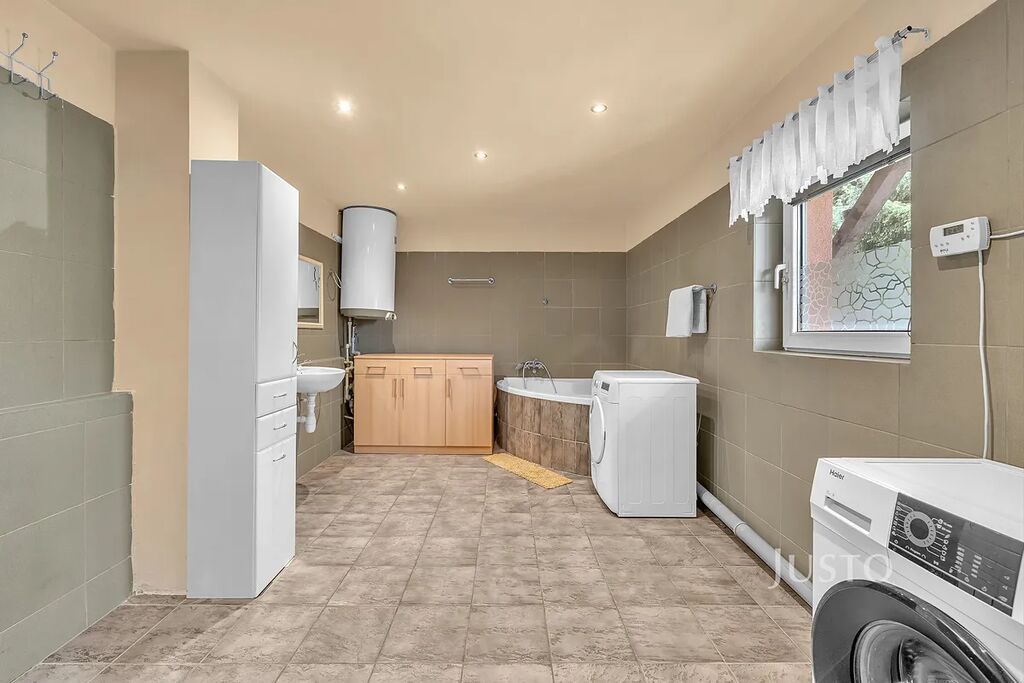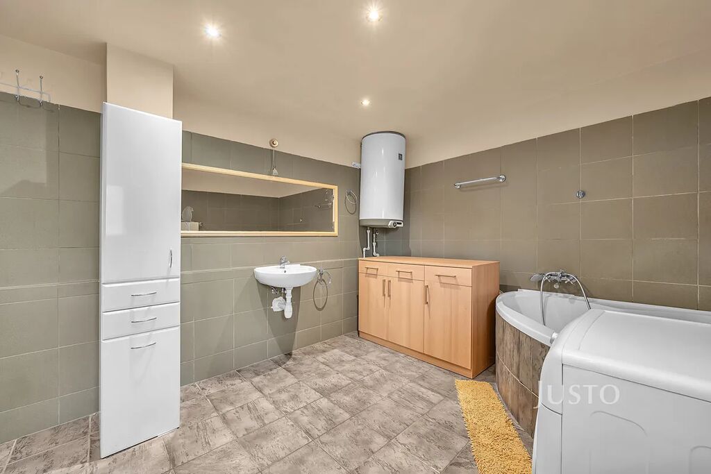 ● obrovská koupelna vybavená vanou a umyvadlem,