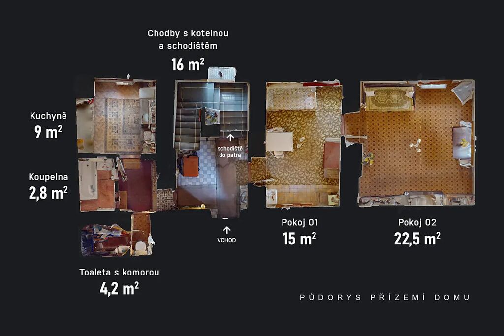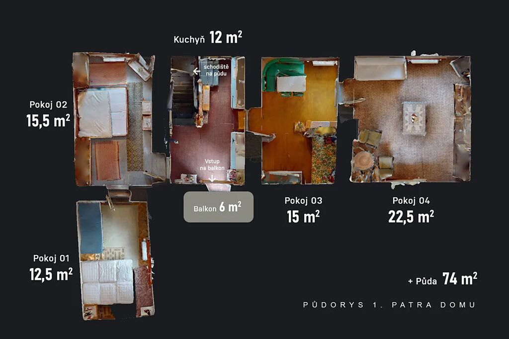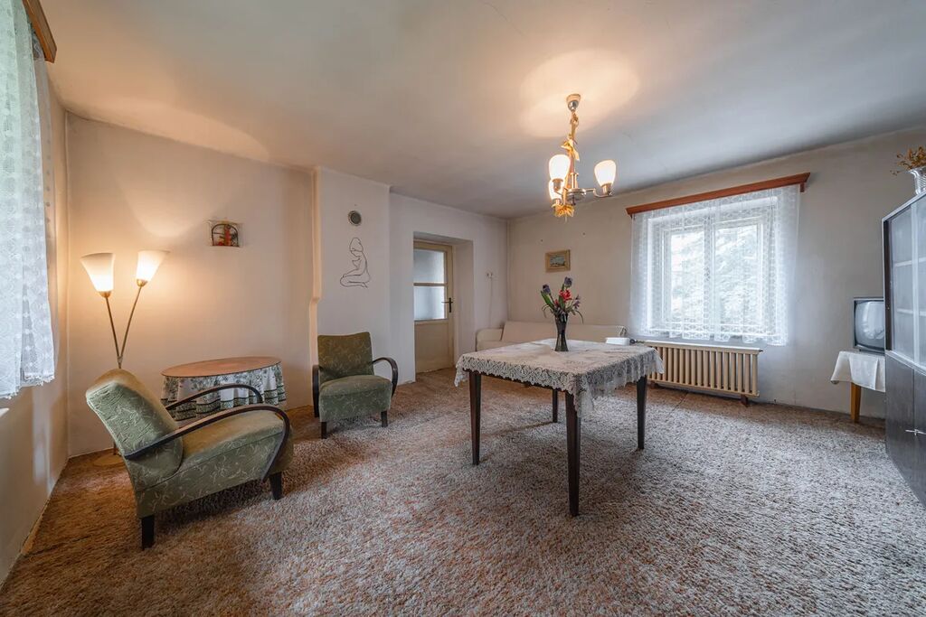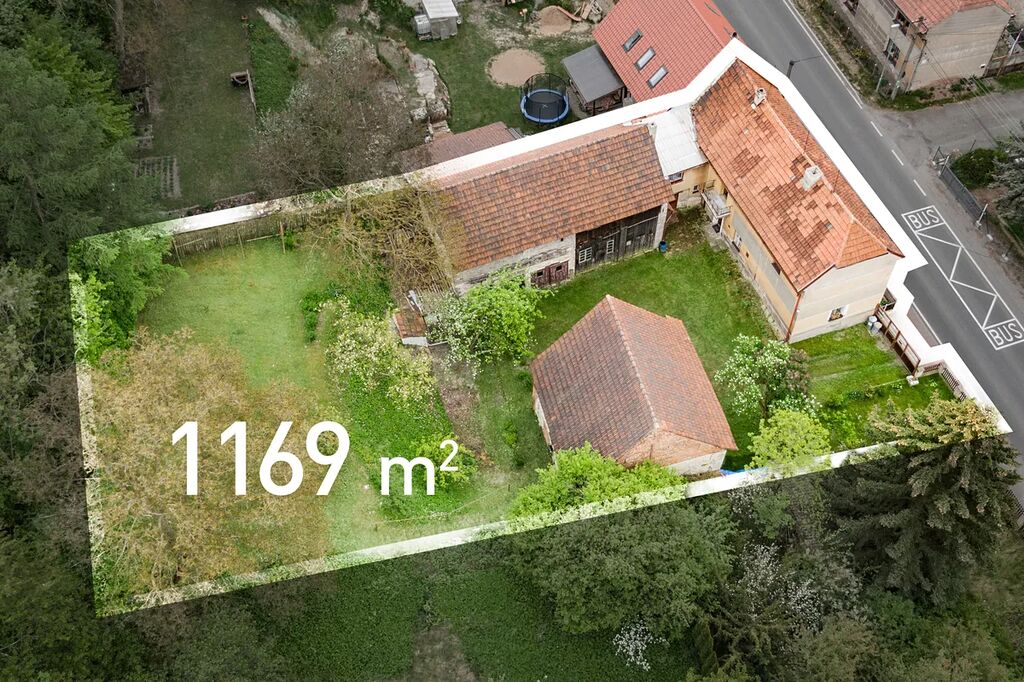 Pozemek má 1 169 m² a tvoří jej dvoupatrový rodinný dům 6+2 (147 m² + půda 74 m²), dále hospodářsko-technická budova cca 200 m² a stodola (60 m²) určená k rekonstrukci. Dům je v původním, plně funkčním stavu, napojen na elektřinu, vlastní studnu a jímku. Vytápění zajišťuje kotel na tuhá paliva, ohřev vody bojlerem. Parkování je možné na dvoře.