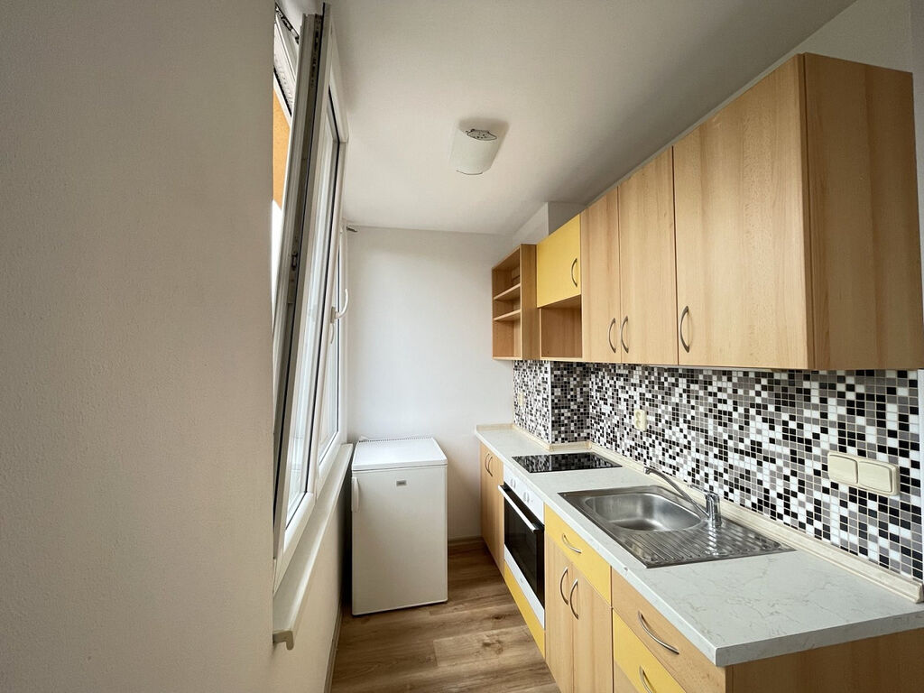 Nabízíme k pronájmu pěkný panelový byt 1+kk se zděným jádrem v Pardubicích - Polabinách, ul. Brožíkova, o celkové výměře včetně příslušenství 30,1 m². Byt je částečně zařízen (kuchyňská linka, sklokeramická deska, lednice, elektrická trouba, vestavěná skříň na chodbě) a je situován v 6. NP s výtahem. K bytu náleží komora na chodbě a sklep. V domě je rozveden internet. V blízkosti je veškerá občanská vybavenost, obchodní centrum KAUFLAND, ALBERT a v docházkové vzdálenosti LIDL. Možnost parkování v blízkosti domu. Kauce + provize RK. Cena je včetně energií. Volný ihned po podpisu smlouvy. Protože není známa energetická třída (PENB) této nemovitosti, uvádíme v souladu s novelou zákona 406/2000 Sb. nejhorší možnou energetickou třídu, tedy G. Majitel si vyhrazuje právo na výběr nájemníka dle vlastních kritérií.
