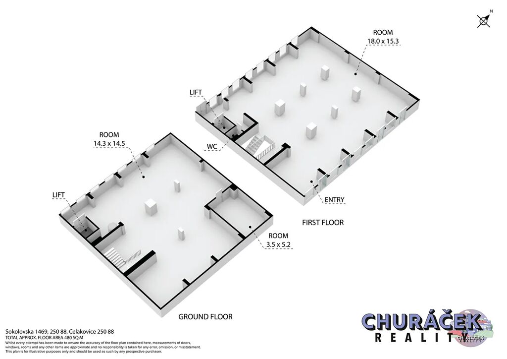 Nemovitost se rozkládá na 463 metrech čtverečních ve dvou podlažích, ty jsou spojena ocelovým schodištěm, nebo je k dispozici nákladní výtah.
