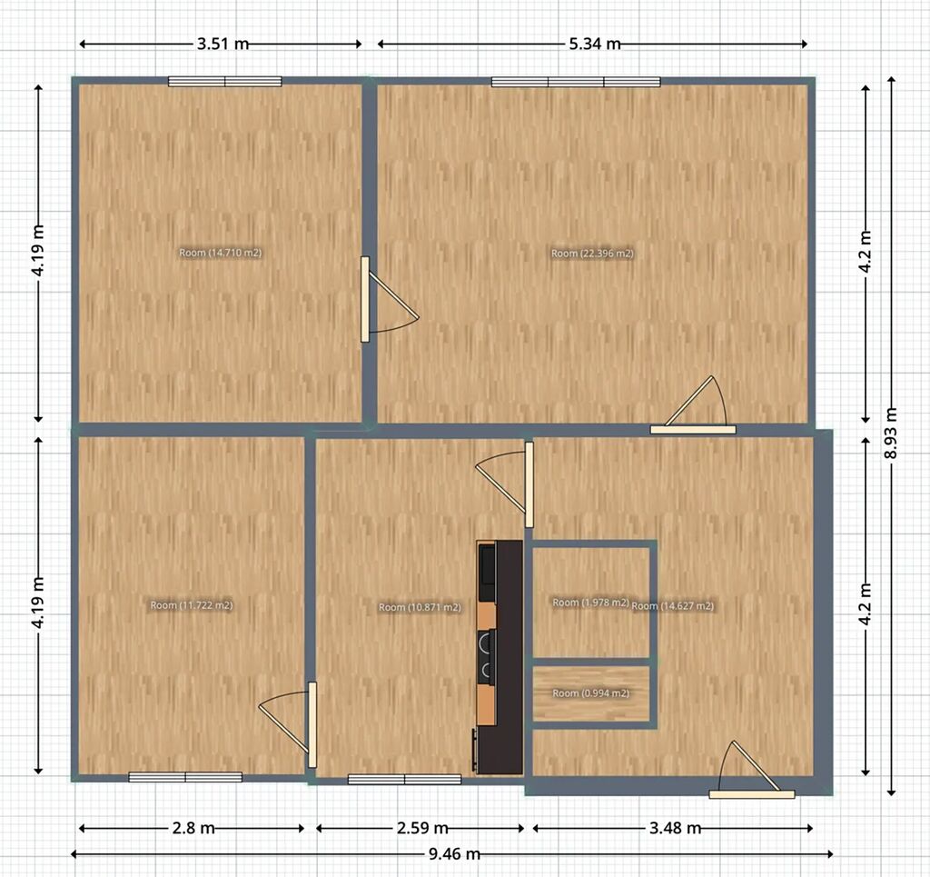 Byt se skládá ze samostatné kuchyně, velkého slunného obývacího pokoje a dvou ložnic, takže poskytuje dostatek soukromí pro každého člena domácnosti.