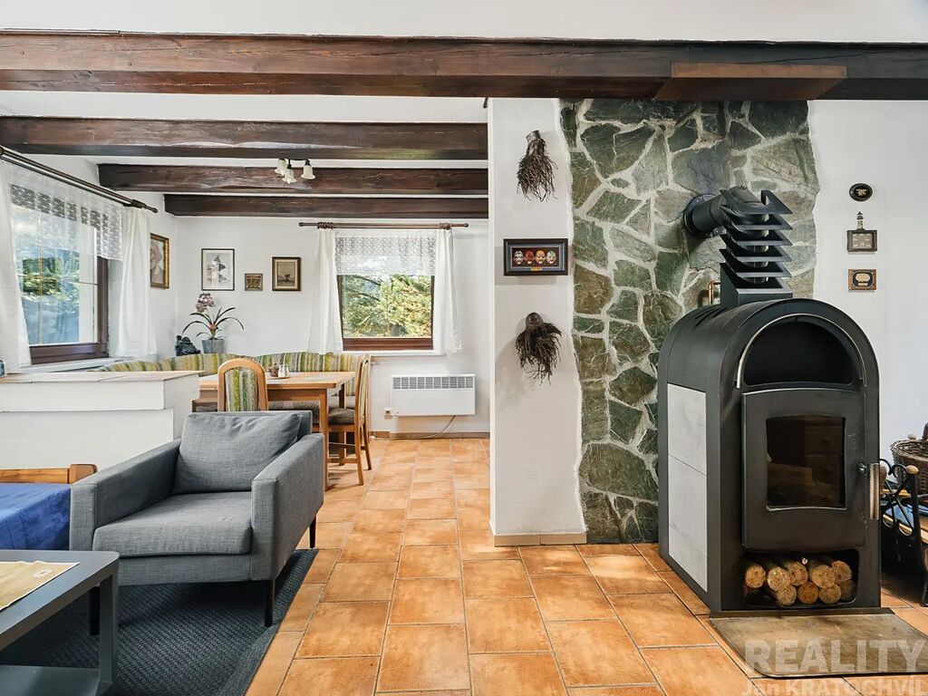 Nabízíme exklizivně prodej zděné chaty k trvalému bydlení v obci Čísovice Bojov, Praha západ. Užitná plocha 130m2, obytná 80m2, terasa, garáž s dílnou, parkovací stání na pozemku. Pozemek celkem 2048m2, zahrada udržovaná, vzrostlé stromy, louka k možnému dalšímu využítí, např. domácí hospodářská zvířata, přístupová cesta. k domu i do garáže. Dům dispozične 4/kk, sklep 35m2 s technickou místností a sprchovým koutem, 1NP- chodba, pokoj, obývací pokoj s krbem s kuchyňským koutem a kuchyní, sporák na PB. Koupelna se sprchovým koutem, extra WC, schodiště. 2NP - 2x pokoj, extra WC. Podlahy dřevěné, dlažba, topení ústřední elektrický kotel, možno celý dům vytápět také centrálně i z krbových kamen, teplá voda bojler., elektřina 220V i 380V, klimatizace, okna VELUX dřevěná. Voda vlastní studna, odpad septik, možno se připojit na tlakovou obecní kanalizaci v hlavní silnici. Dopravní obslužnost 10 min pěšky nádraží Bojanovice, nebo Čísovice Bojov, 1hod vlakem na Praha Hlavní nádraží, autem 25min Praha 5 Smíchov. Autobusem zastávka Čísovice Pod Horou, přestup v Mníšku pod Brdy, konečná stanice Nádraží Smíchov, celkem 36 minut. Občanská dostupnost Mníšek pod Brdy. Doporučuji prohlídku, další informace u makléře tel. 734 528 975.