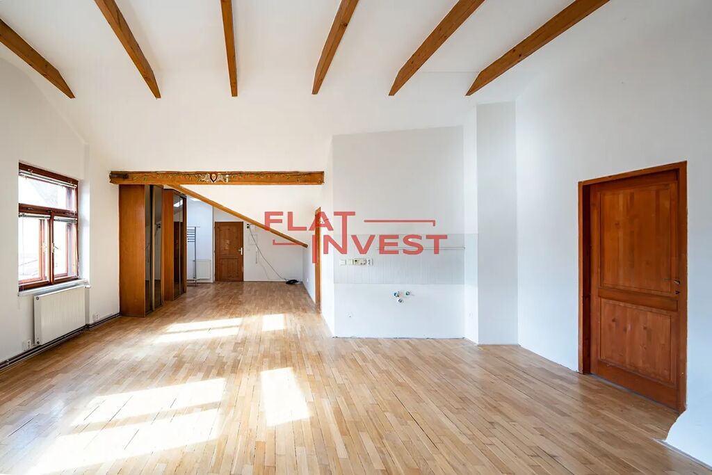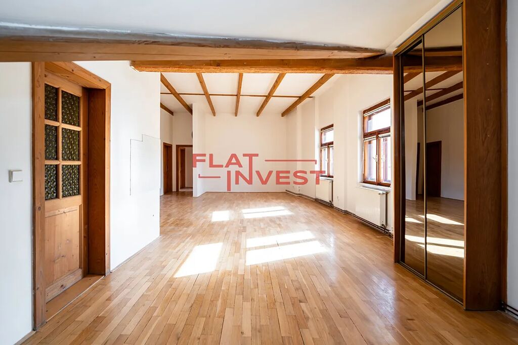 Nabízíme k prodeji prostorný, vzdušný a mimořádně světlý byt 5+kk o ploše 162 m² nacházející se v posledním (3.) patře památkově chráněného domu U Zlaté konvice s původem v 15. století.
