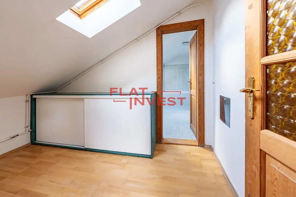 162 m² | poslední (3.) patro | stropy až cca 4 m, přiznané trámy.