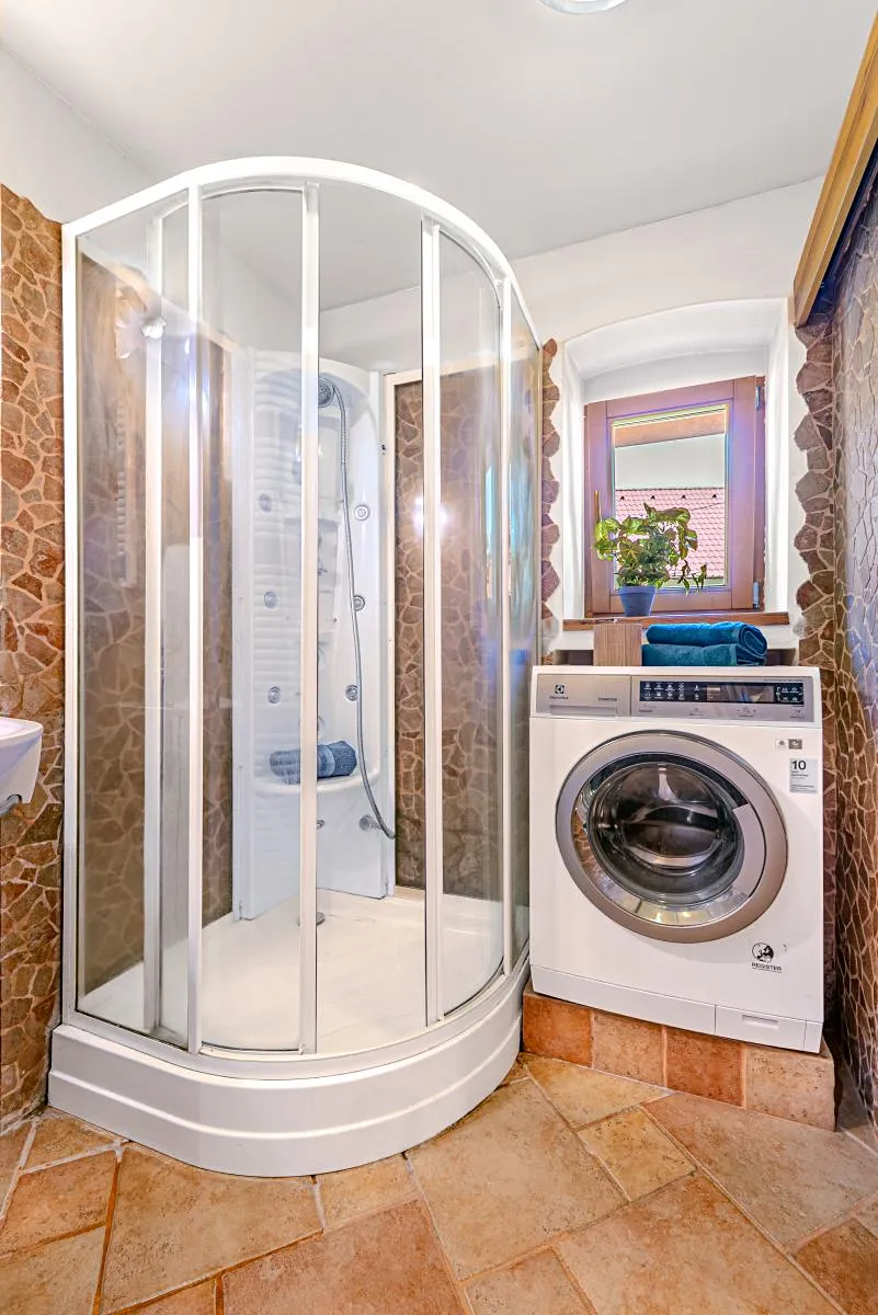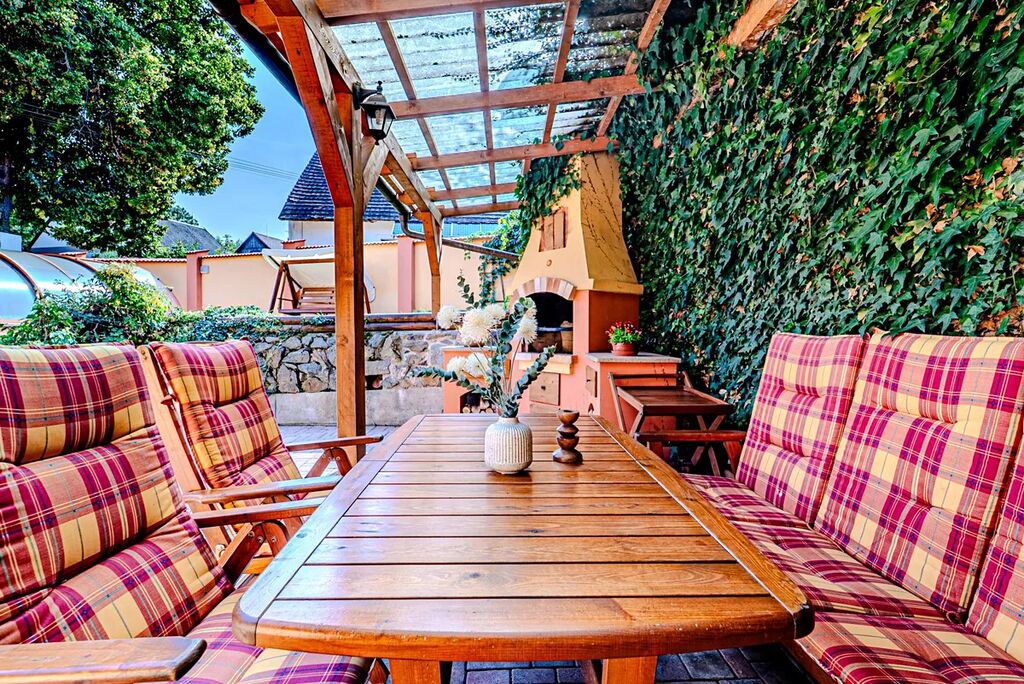 Zahrada o rozloze 385 m poskytuje dostatek prostoru pro odpočinek i volnočasové aktivity. Najdete zde vyhřívaný krytý bazén, prostornou pergolu a zahradní kuchyni s grilem, ideální pro setkávání s přáteli a rodinou.