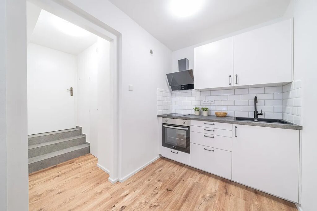 Velká francouzská okna zajišťují v celém interiéru dostatek přirozeného světla. Najdete zde kuchyňský kout s moderní linkou, podlahové topení a vstup na krásnou terasu. Ta je částečně obklopena vzrostlou zelení a poskytuje dostatek soukromí. Do koupelny se sprchovým koutem vstupujete z předsíně. Byt se prodává nezařízený. Můžete si ho tak upravit podle vlastních představ.