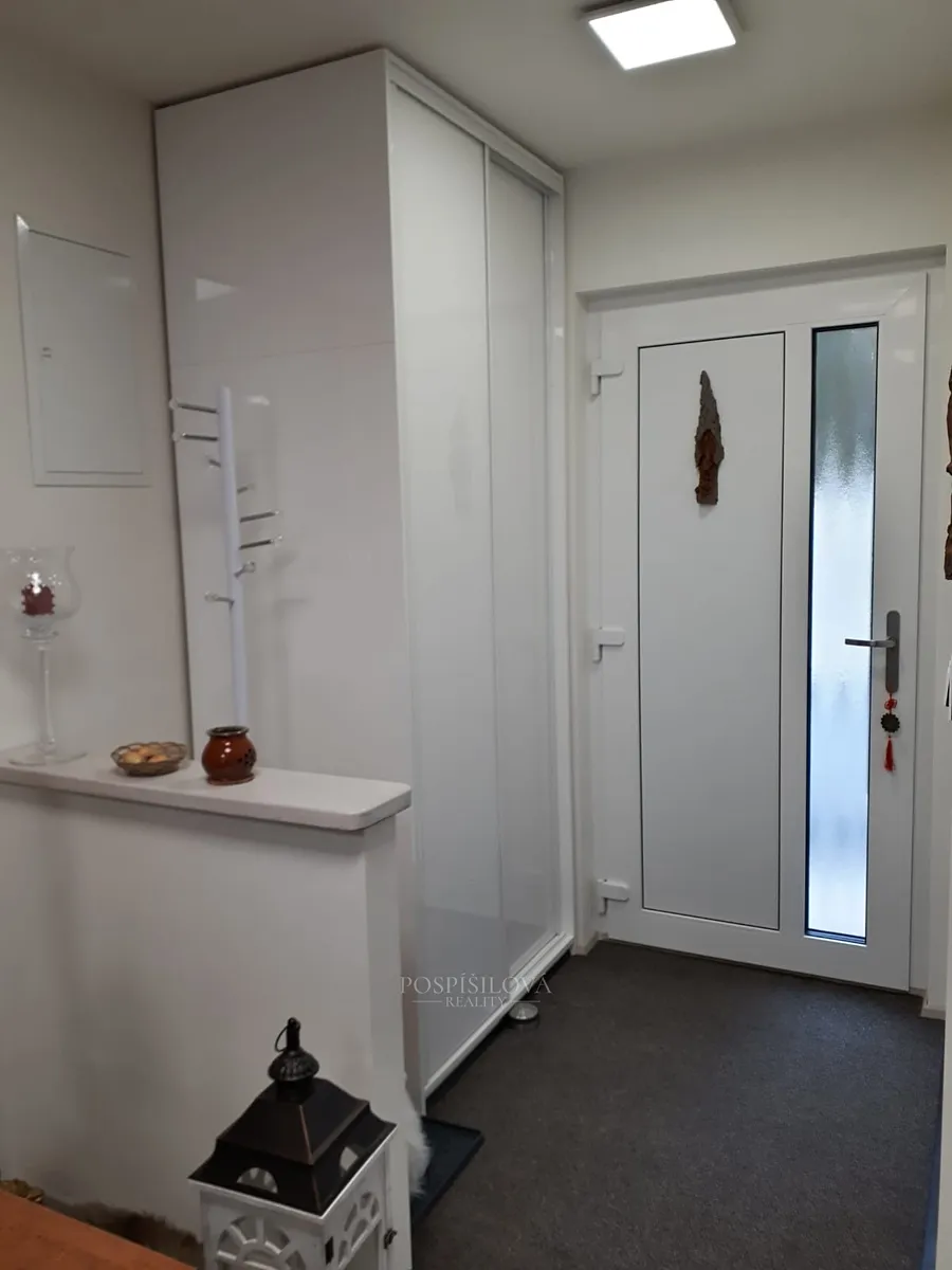 Domek disponuje dvěma patry s celkovou plochou 75 m2, s možností užívání části zahrady. V přízemí se nachází kuchyňský kout propojený s obývacím pokojem a koupelna (wc, sprchový kout a umyvadlo). V horním patře se nachází ložnice a úložné prostory. Topení je v podlaze (přízemí), v patře radiátor. Média budou rozpočítávána na nájemce.