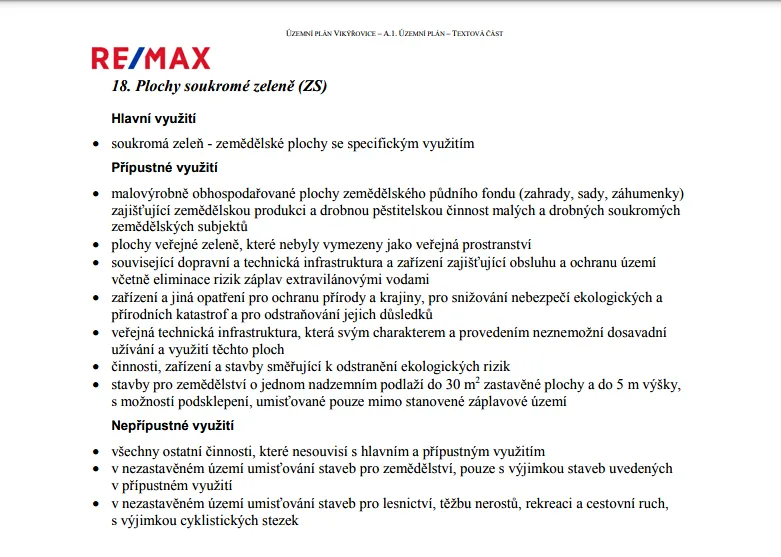 K pronájmu jsou k dispozici dvě plochy zapsané v územním plánu obce Vikýřovice jako plochy soukromé zeleně. Pozemky jsou vedeny v katastru nemovitostí jako zahrada a jejich celková výměra činí 2970 m². Na hranici pozemků je zavedena elektřina a přístup je možný po obecní komunikaci. Pozemky leží vedle sebe, jsou oplocené a zatravněné. Roční nájemné činí 12 000 Kč. Provize realitní kanceláře odpovídá částce jednoho ročního nájmu. V případě zájmu o další informace kontaktujte makléře.