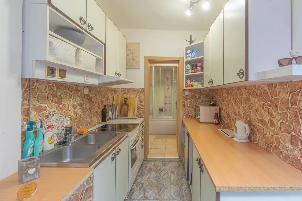 Menší bytová jednotka nabízí pohodlné bydlení v dispozici 2+kk. Najdete zde chodbu (4 m²), ložnici (10,4 m²), pokoj (15,2 m²), kuchyni (10,2 m²) a koupelnu s WC (3,8 m²). Dohromady 43,2m2.