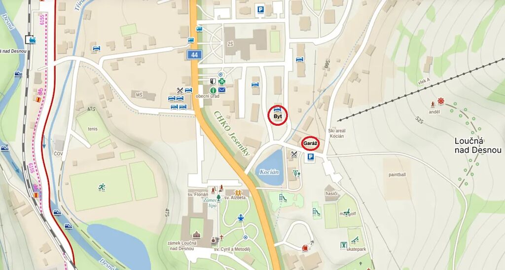 Fungující společenství vlastníků jednotek a klidná lokalita zajišťují bezproblémové a pohodové bydlení. V okolí je veškerá občanská vybavenost – obchody, školka, škola, restaurace i vlakové a autobusové spojení. Loučná nad Desnou nabízí také mnoho možností pro rekreaci a odpočinek – v létě turistika, cyklostezky, termální koupaliště, dětské hřiště, minigolf, a skatepark v zimě blízké lyžařské areály Kouty nad Desnou, Červenohorské sedlo a také menší skiareál Kocián s vlekem, na který se díváte přímo s balkonu bytu.