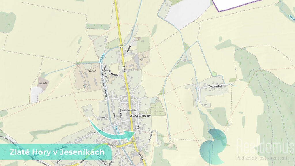 Pozemky jsou vedeny jako zahrady a ostatní plochy, z části v památkové zóně města. Nacházejí se v okrajové části Zlatých Hor, v blízkosti obytné zástavby a komunikace, s dobrým přístupem a stabilním investičním potenciálem.