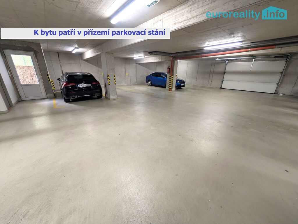 K bytu náleží také kryté parkovací stání v přízemí, což je velkou výhodou v této městské lokalitě, kde je parkování často komplikované.