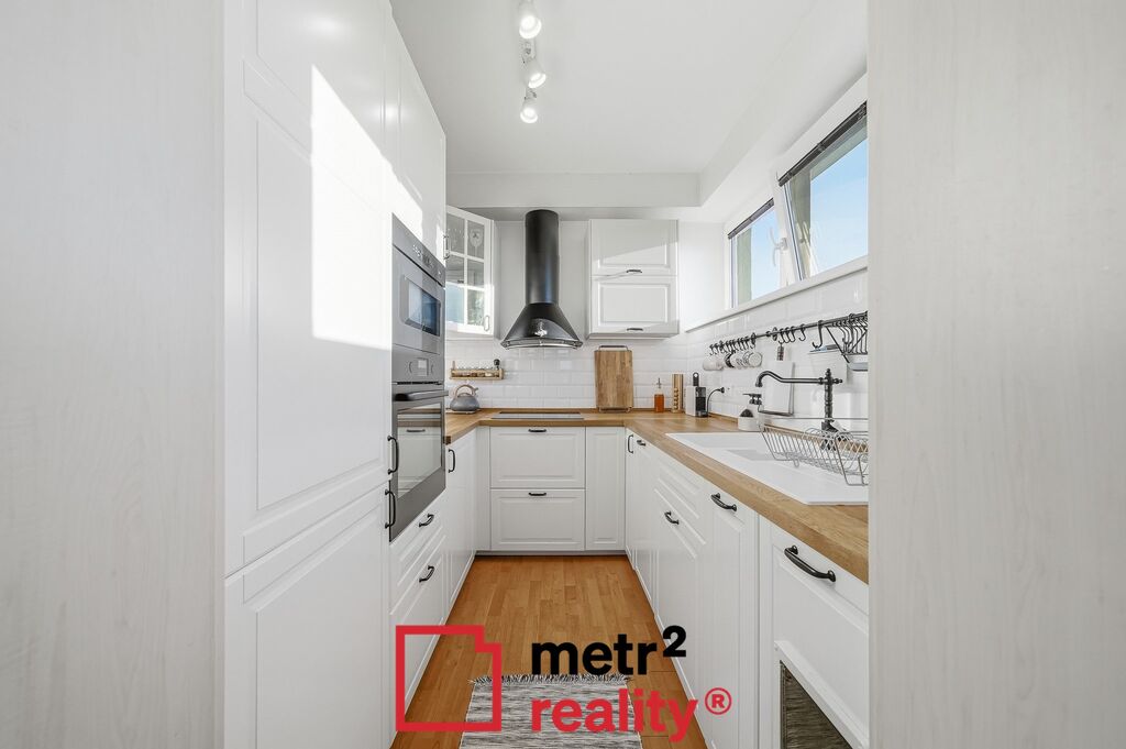 Hledáte výjimečný, slunný a velmi prostorný byt v Uničově? Ve výhradním zastoupení majitelů si Vám dovolujeme nabídnout byt v cihlovém domě, který byl zkolaudován v roce 2011. Byt je v osobním vlastnictví, o dispozici 4+1 a je umístěn v posledním, 7. patře bytového domu s výtahem. Byt má krásnou podlahovou plochou 99,32 m2, součástí bytu je zasklená terasa a balkon o celkové výměře 7,33 m2 a sklep v přízemí domu o výměře 4,62 m2. Byt disponuje prostornou vstupní chodbou, koupelnou se sprchovým koutem i vanou, WC je zvlášť. Z obývacího pokoje je vstup do dětského pokoje a kuchyně. Další dvě ložnice jsou se samostatnými vstupy. Součástí dětského pokoje je i samostatná šatna. Z obývacího pokoje je vstup francouzským oknem na zasklenou terasu s krásným výhledem do okolní krajiny. Byt je krásně vybavený ve venkovském stylu, včetně kuchyňské linky na míru, jejíž součástí jsou vestavěné spotřebiče. Poté, co stávající majitelé byt koupili, předělali si jej k obrazu svému a byt zmodernizovali, je nově obložená koupelna i WC, nová kuchyňská linka, interiérové dveře, včetně obložkových zárubní, mezi kuchyní a obývacím pokojem jsou posuvné dveře do pouzdra. V obývacím pokoji je klimatizace, která ochladí v parných dnech. V případě zájmu o byt jsou majitelé připraveni jednat o přenechání užívání oplocené zahrady se zahradním domkem, kterou mají v nájmu od Města a která se nachází hned za domem. V bezprostřední blízkosti bytu se pak nachází veškerá občanská vybavenost, škola, školka, poliklinika, obchody. Do centra města je to pěšky 5 minut. Město Uničov je velmi dobře sjízdné do Olomouce, autem 25 minut, což byt činí zajímavým i pro klienty z Olomouce, kterým nevadí dojíždění a ocení kouzlo a klid menšího města. V případě zájmu o prohlídku nás neváhejte kontaktovat a rádi Vám ji domluvíme.