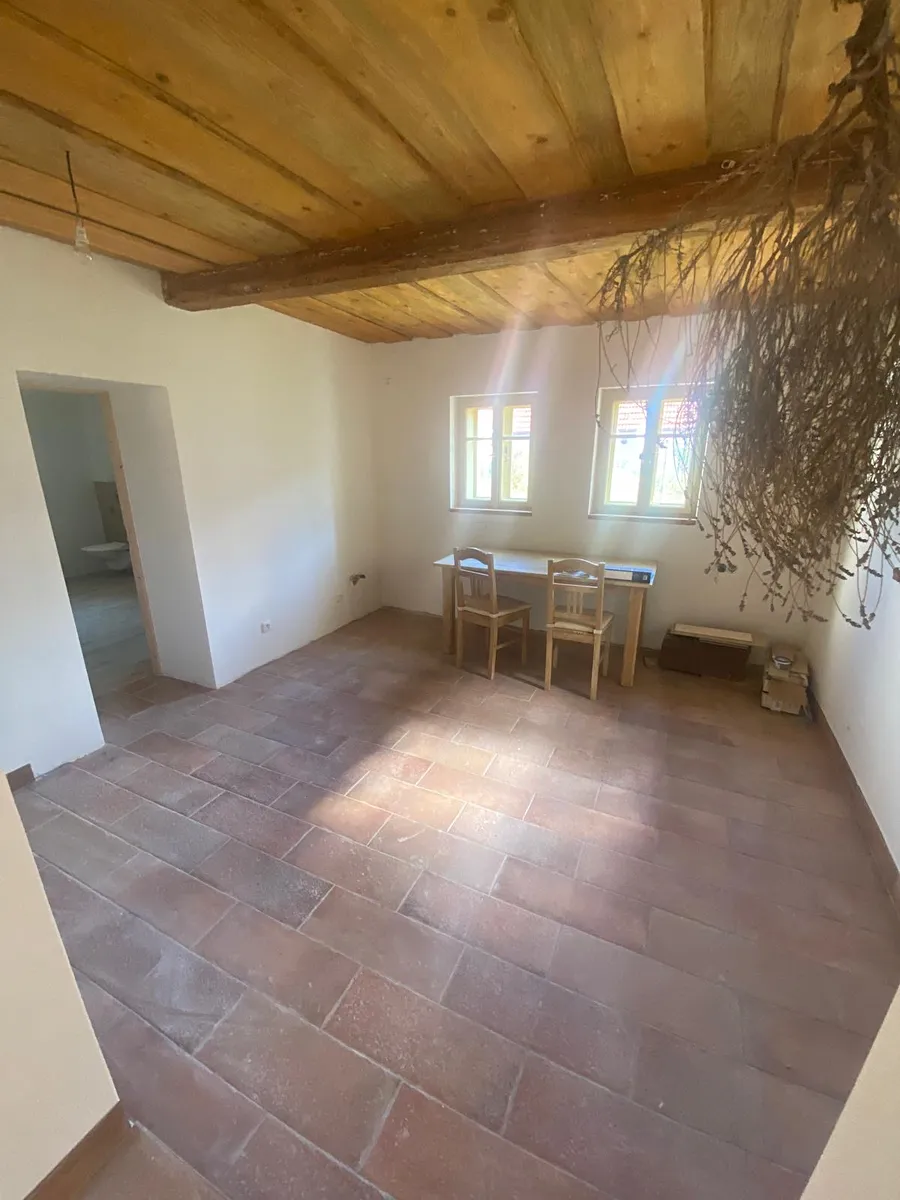 Námi nabízený dům plně zapadá do místního koloritu staveb, tudíž podlouhlá venkovská stavení, jejichž přední část byla dříve využívána k bydlení, zadní část k hospodaření. V současné době prošel dům kompletní rekonstrukcí, kde se dbalo na to, ponechat domu původní tvář venkova. Zůstaly pouze obvodové zdi, které byly odizolovány, rovněž se vylévaly nové podlahy s podlahovým topením, byla vyměněna nová špaletová okna, dveře se zárubněmi, elektrorozvody v mědi, voda a odpady v plastu, nové omítky, fasáda, vyměněn krov s krytinou. Po celé délce domu je přístavek 20 m2, kde je umístěna garáž s montážní jámou, vedlejší místnost je dílna, zde je v rohu studna a kompletní příprava pro instalaci elektrického kotle a tepelného čerpadla. U domu je malá zahrádka a zděná kolna. IS: obecní vodovod a kanalizace, vlastní studna, nová elektroinstalace, krbová kamna s podlahovým vytápěním.