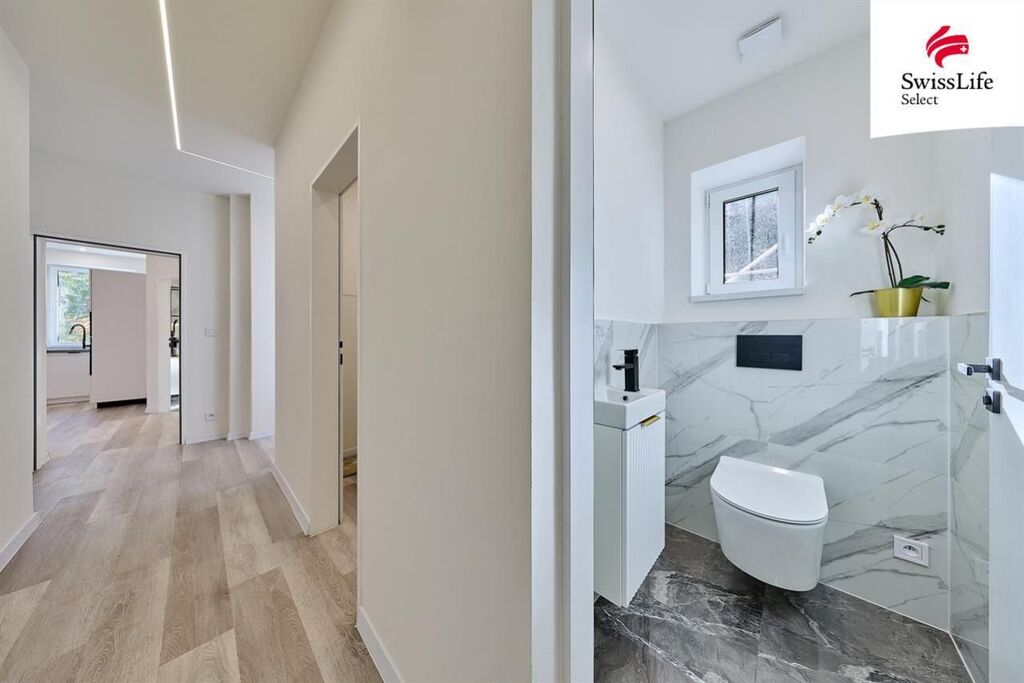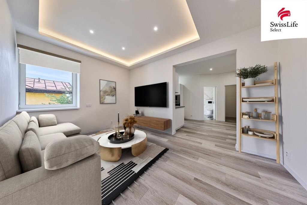 Byt prošel kompletní rekonstrukcí - nové rozvody elektřiny, vody a odpady, nová kuchyňská linka se spotřebiči, modernizována koupelna, plastová okna, nové stropy a omítky, nové vinylové podlahy. Dům je nově zateplený. Vytápění je řešeno podlahovým topením napojeným na horkovod. Ohřev vody el. bojler. PENB zatím třídy E probíhá finalizace rekonstrukce (zateplení fasády, střechy a nová okna). Po dokončení bude nový energetický štítek s nižší energetickou třídou.