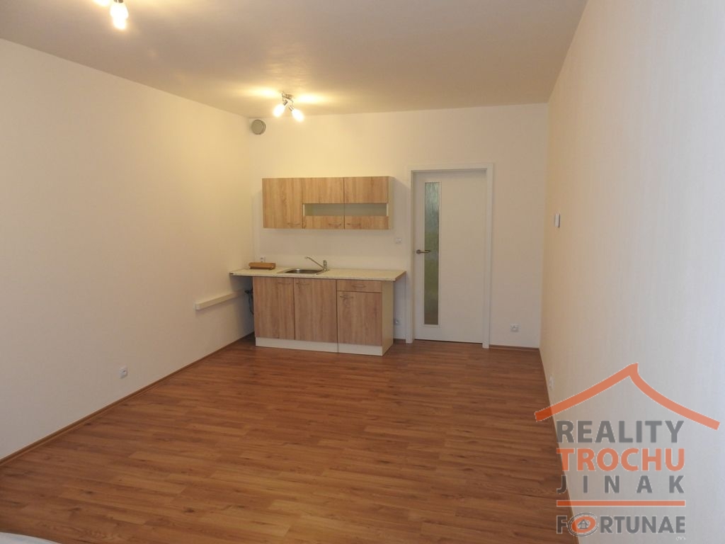 Dispozice: obývací pokoj s kuchyňským koutem, jídelnou a vstupem na balkon, koupelna (sprchový kout, WC), předsíň.