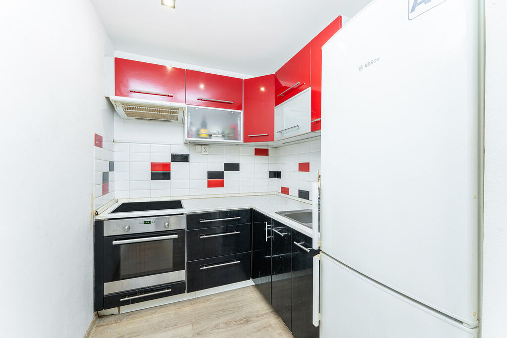 Při vstupu do bytu je hned vlevo oddělené WC, vedle koupelna se sprchovým koutem. Jádro je zděné, elektřina v mědi. V chodbě jsou vestavěné skříně. Ložnice je samostatná. Přilehlý obývací pokoj je spojen s kuchyňským koutem. Tato praktická dispozice umožňuje uživatelům poklidné bydlení. K bytu náleží v suterénu domu sklepní kóje, na patře je možnost využívat společnou lodžii. Náklady spojené s bydlením jsou 3500,-Kč/m.