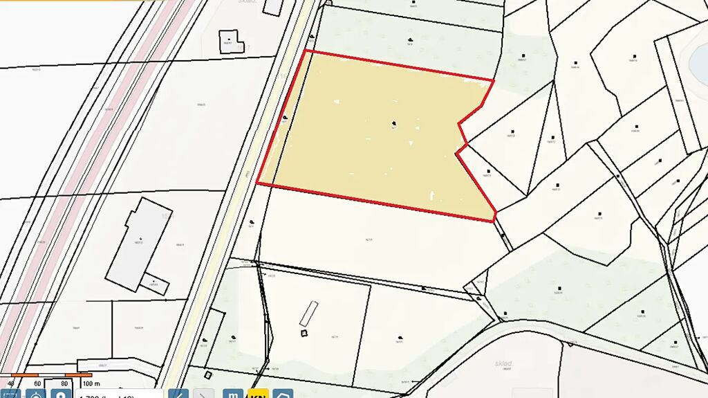 Pozemek se nachází v Mníšku pod Brdy u sjezdu z dálnice D4 Praha - Strakonice.