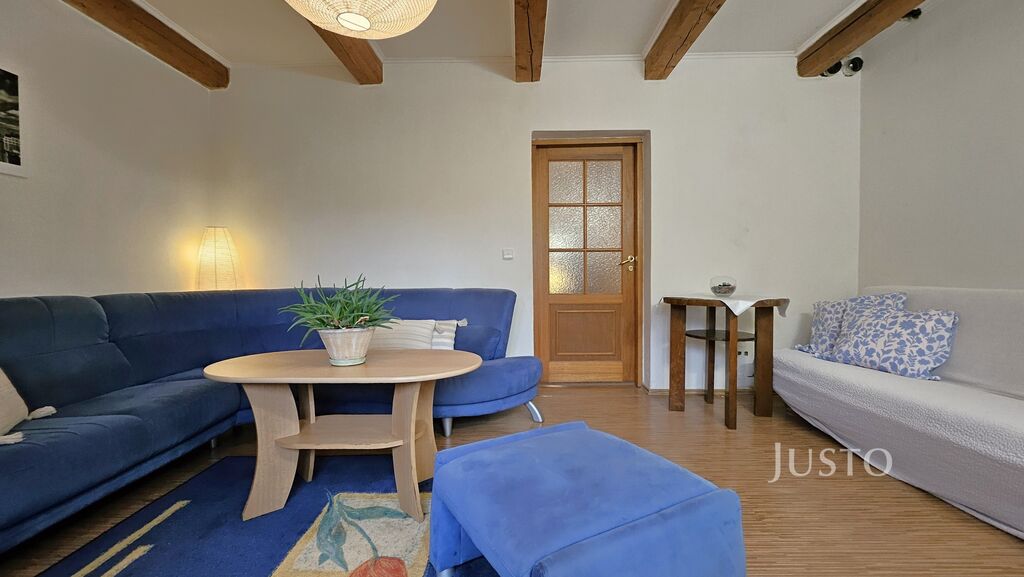 V obývacím pokoji jsou krbová kamna. V podkroví jsou situovány dva samostatné pokoje a volný půdní prostor s možností dalšího rozšíření.